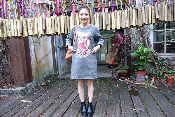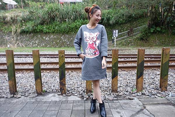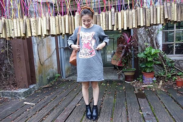 只要一雙靴子,一個可愛的髮圈就完成成套搭配![]()