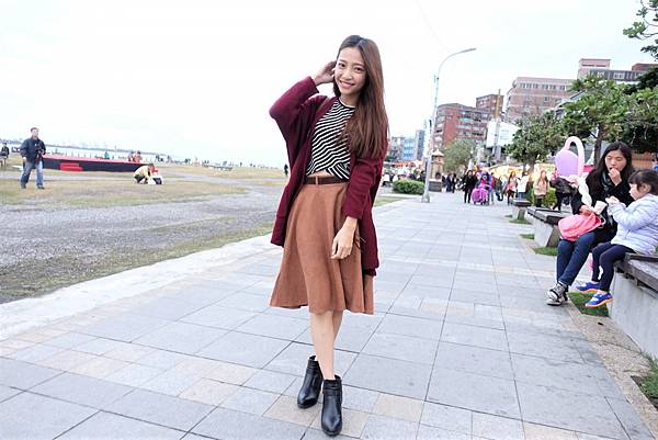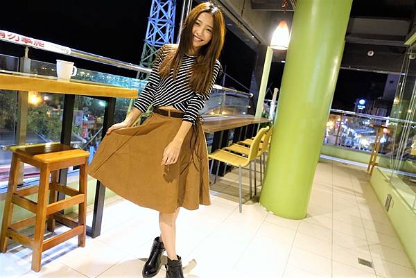 裡面穿一件比較休閒的條紋上衣,再搭配這件超可愛的裙子